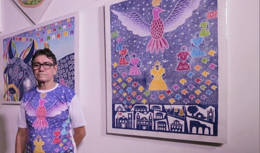 O artista de mão-cheia —- Nascido em Vitória do Mearim, na região da Baixada Maranhense, Airton Marinho foi influenciado pelo universo dos cordéis, desde a infância. O artista, que reside em São Luís, tem mais de quatro décadas de carreira e frequentemente retrata em suas obras o Povo e a Cultura do Estado por meio de xilogravuras (uma forma de gravura em relevo, onde a imagem é esculpida em uma matriz de madeira. A técnica consiste em esculpir a imagem na madeira e depois aplicar tinta para criar uma impressão em papel ou outro material).