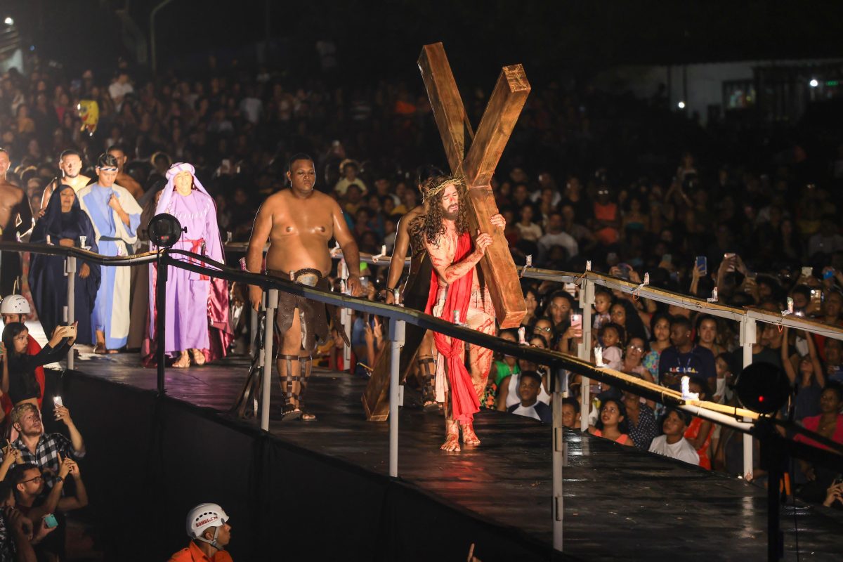 A arte transformadora — Também no folder da Via-Sacra deste ano, não me passaram despercebidos os trechos em que o Anjo da Guarda, hoje, é um dos centros culturais mais importantes de São Luís, cheio de artistas, músicos e grupos de teatro: “O Grupo Grita foi essencial para essa transformação. Há 50 anos, começou a levar arte para as ruas, criando um movimento cultural forte e duradouro. O que era um sonho pequeno, virou uma tradição que mostra a força da Cultura Popular. A Via-Sacra é parte da alma do Anjo da Guarda. Todo ano, mostra como o teatro pode transformar vidas. E deixa uma pergunta no ar: se a poeira virou palco, o que precisamos fazer para manter esse palco vivo no futuro?”