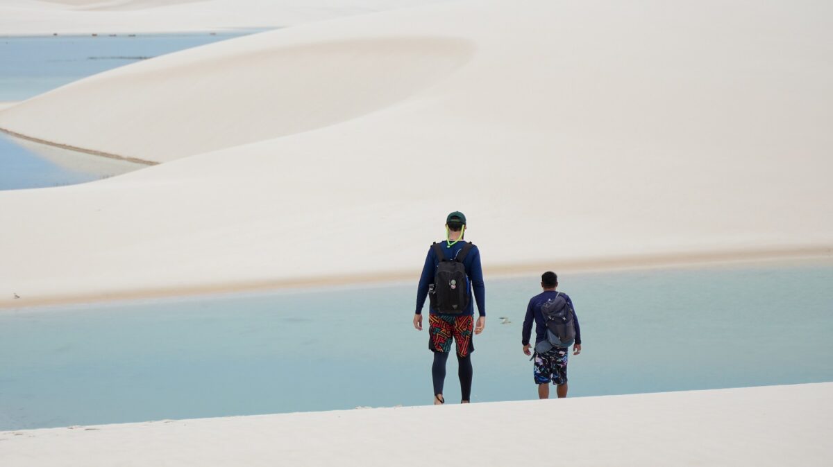 A travessia a pé pelos Lençóis Maranhenses oferece uma imersão completa na vastidão do parque nacional - Foto: Divulgação