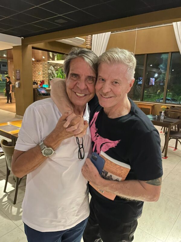 Em click, o ator e dramaturgo Miguel Falabella ao lado do produtor teatral de maior referência no Maranhão, Moraes Jr. Em sua passagem por São Luís (MA), Falabella fez questão de abraçar o amigo maranhense, e organizou um espaço em sua agenda para jantar com ele e colocar os papos em dia. Miguel Falabella está na Ilha, acompanhado do ator e produtor Jô Santana. Eles vieram para cumprir atividades relacionadas ao projeto do Instituto Humanitas360 que está implantando uma nova cooperativa para detentas no Maranhão. Eles foram também conhecer um pouco da Cultura Popular do Estado em visita a sede do Boi de Maracanã; e articulam ainda patrocínio ao espetáculo “Marrom – O Musical”, que contará a história da estupenda Alcione.