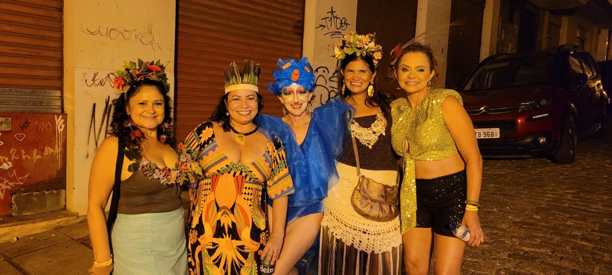 Já tarimbado no calendário cultural e alternativo da capital maranhense, o baile Carnavália, da Carruagem Produções, lotou o quintal do Reviver Hostel com a energia dos “Perdidos na Selva”. Além da sequência certeira do DJ Jorge Choairy e Eduardo Beat, a banda Os Tropix provocou uma apresentação avassaladora com um repertório e performance surpreendentes. Marcamos presença, e claro, fizemos o registro. Em click, as jornalistas Franci Monteles, Vanessa Serra, Yndara Vasques e Keila Cruz, emoldurando a anfitriã Luiza Teixeira fantasiada de arara azul.