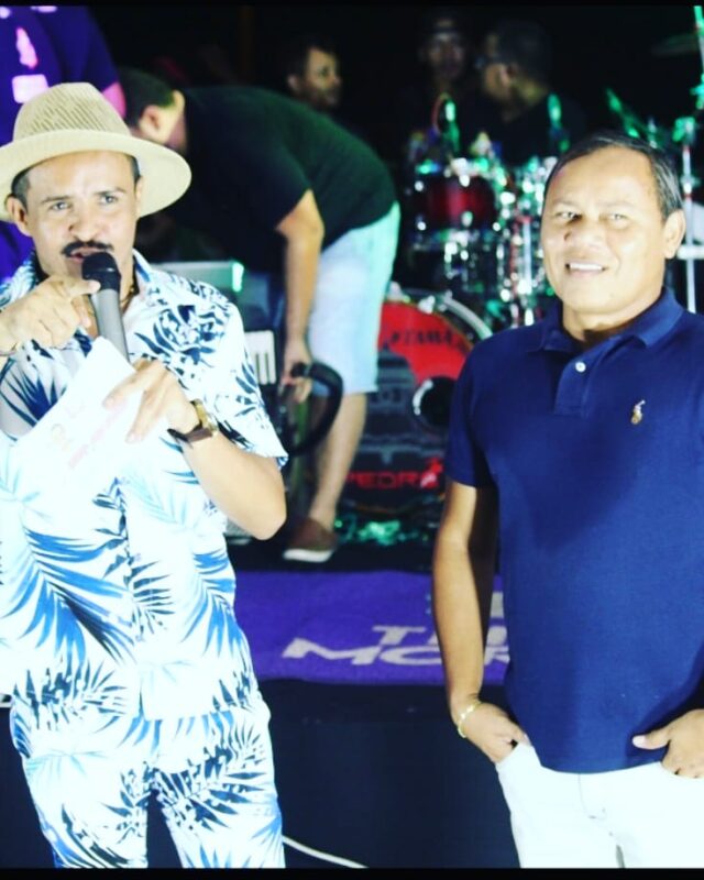 O apresentador e colunista social William Santos, do programa Top, da TV Band Maranhão, está muito satisfeito com o sucesso da Live Solidária Verão Top. A tramissão ao vivo do evento aconteceu no Rio Poty Hotel e contou com a presença de cantores maranhenses e, também, com participação de artistas de renome nacional. Na foto, William Santos aparece ao lado do presidente da Câmara Municipal da cidade de Raposa, vereador Beka Rodrigues.