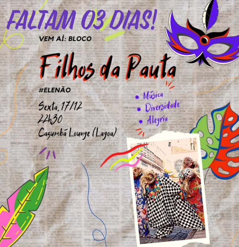 Buscando sempre manter a função social do Jornalismo trabalhada de maneira muito séria e leve ao mesmo tempo, uma nova proposta surge no meio da imprensa maranhense. É o Filhos da Pauta, bloco que será lançado nesta sexta-feira (17/12) a partir das 22h30 no Cazumbá Longe (na Lagoa da Jansen), com a proposta de um espaço de catarse, irreverência e liberdade. O projeto segue em 2022 por meio das Rodas de Diálogos envolvendo diversas temáticas e a relação com o Jornalismo.