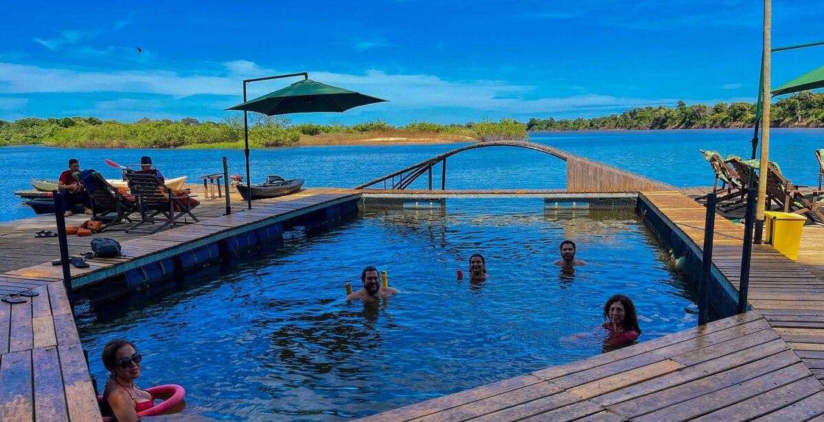 Piscina natural junto ao deck permite aos hóspedes relaxar e se refrescar em meio à paisagem do Rio do Coco – Foto: Penaforte Dias