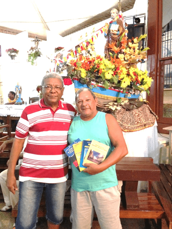 O Autor presenteou César Lima, amigo de infância, na Madre de Deus, há muitos anos radicado no Rio, com seus livros mais recentes, na véspera de São Pedro/2015 – Foto: Laura Lima