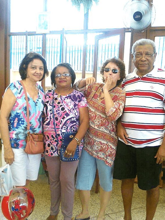 Herbert de Jesus Santos, com amigas do Clube de Jovens da Madre de Deus, Lúcia Bulcão, Gracinha Ferreira Silva, Maria Cecília Bulcão (Zoca), na Capela de São Pedro/Festa de 2015 – Foto: Jorge Ribeiro