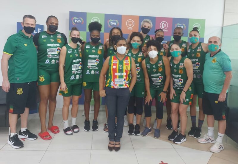 Exemplo disso é o apoio que a TVN acaba de fechar com o time feminino do Sampaio Basquete. A empresa está fornecendo internet e TV HD para todas as jogadoras, além do sinal de internet para o Ginásio Costa Rodrigues também. Na foto, com a camisa do time, a Gerente Comercial da TVN Walkiria Pinto, entre as jogadoras e técnicos do Sampaio Basquete na sede da operadora, que agora é apoiadora oficial do time.