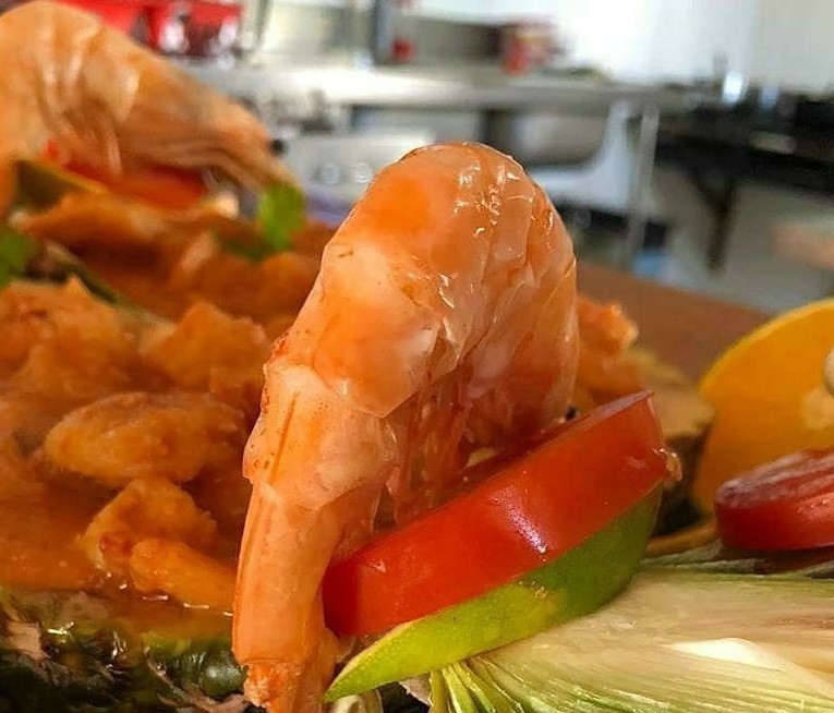 Um camarão temperado no alho e sal, com cebola picada, creme de leite, a fruta picada, servido dentro na carcaça do Abacaxi (retirado sua polpa) recheado até a borda com camarões secos e graúdos, montados com rodelas de pimentão, tomate e azeitona. Um prato absurdamente delicioso que faz parte da culinária regional maranhense e que hoje faz parte de um cardápio do que o Maranhão tem a oferecer de mais saboroso na gastronomia.